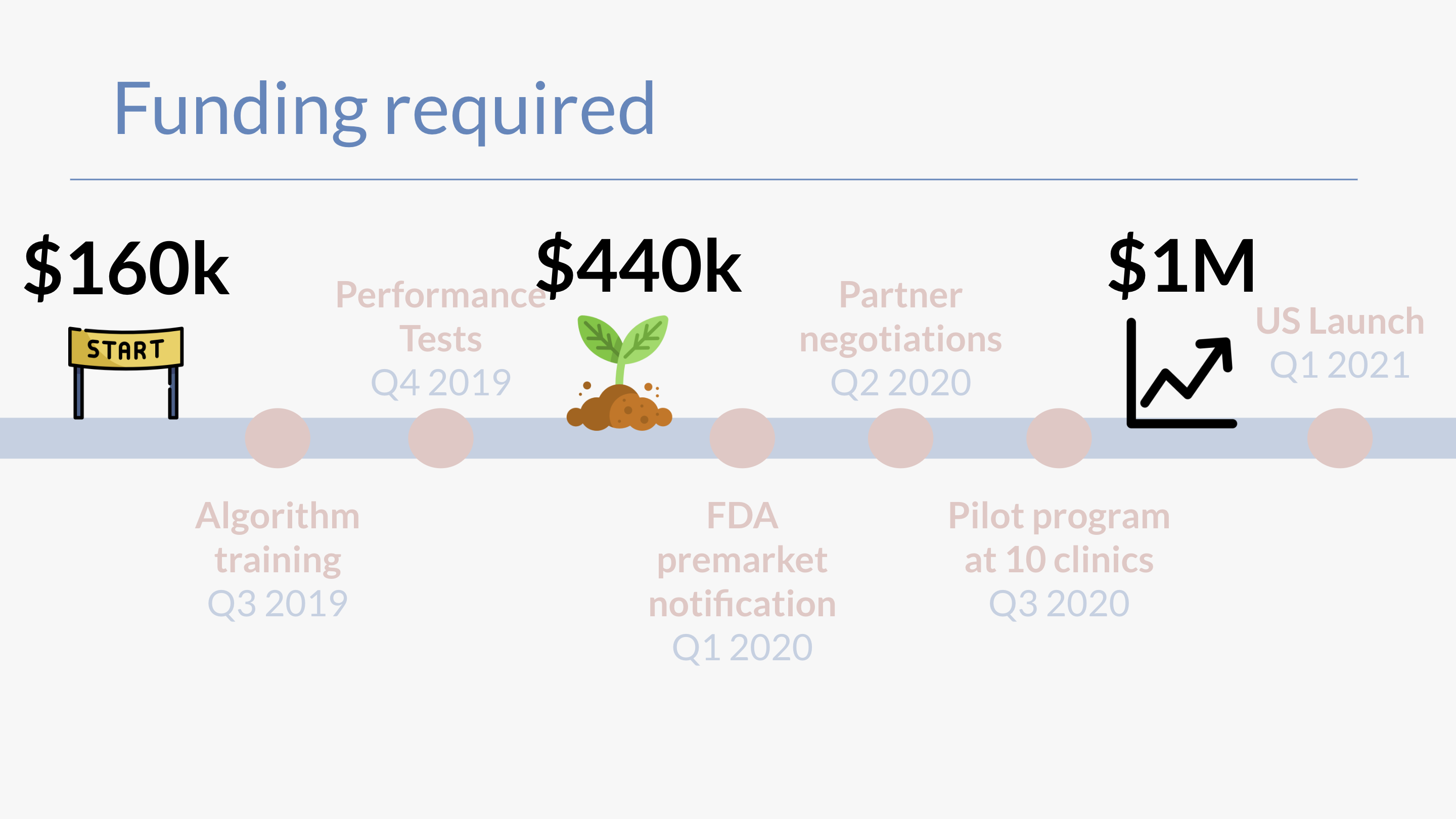 Based on that we asked for adequate funding to give us enough runway to get through several stages of our go-to-market plan. With our calculations we expected to break-even in 3 years and showed the projected revenue for each year after launch.